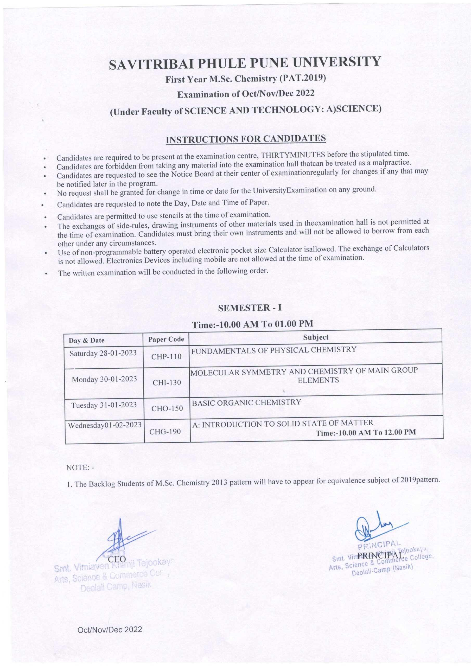 Scrolling NewsJanuary 11, 2023 M.Sc. Chemistry Sem-I Exam Time Table Oct-2022-23 Related posts BCA Institute level Admission List…हिंदी दिवस २०२५जल्लोष युवक महोत्सव २०२५Tree Plantation by NSS Students…Commercial Pilot License Workshop by…International Yoga Day -2025मुलींना मोफत शिक्षण परिपत्रकCollege Celebrated Maharashtra Din and…College celebrated Dr. Babasaheb Ambedkar…EXAM FORM NOTICE BA (2019…