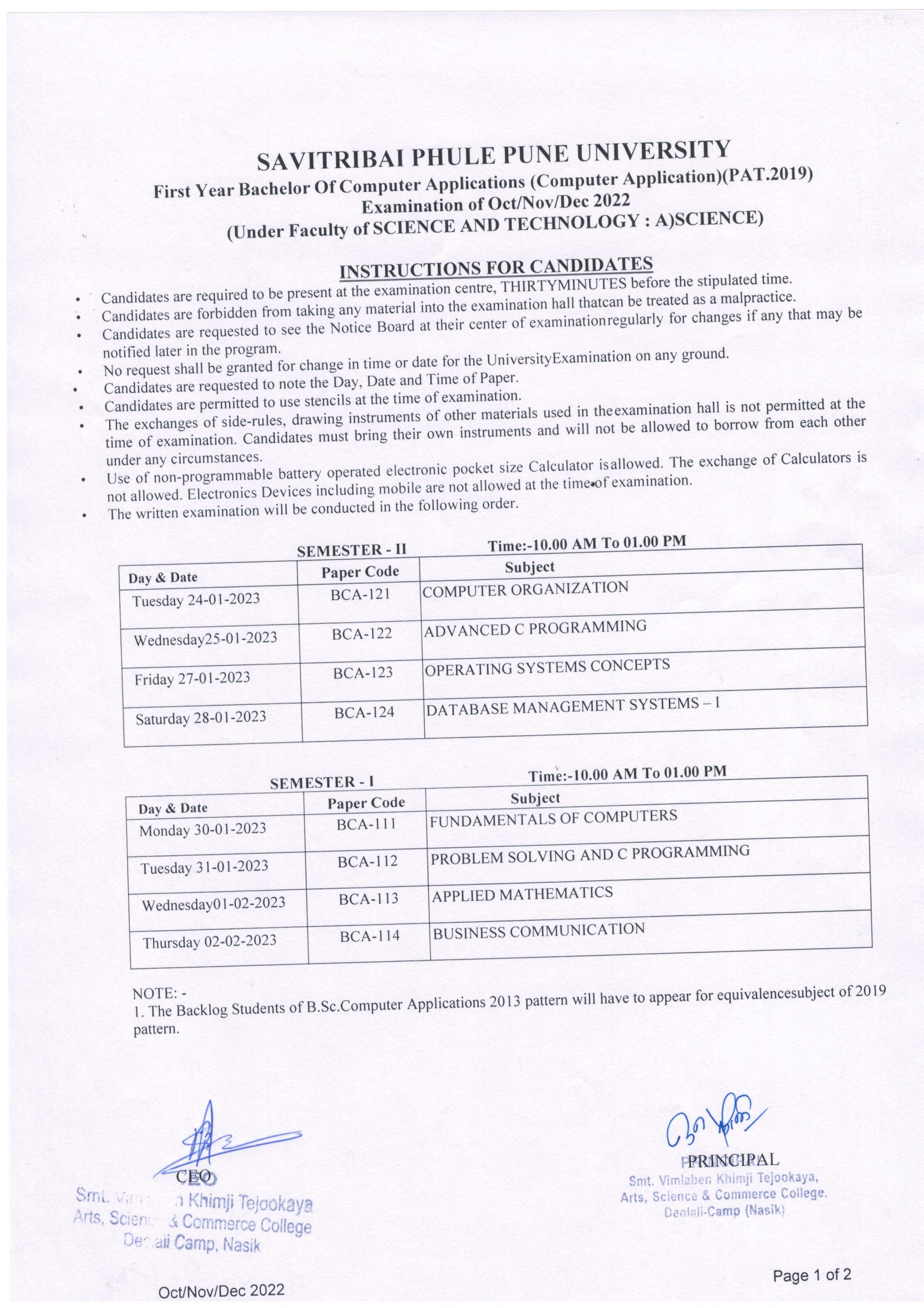 /First Year Bachelor Of Computer Applications(Computer Application)(PAT.2019)