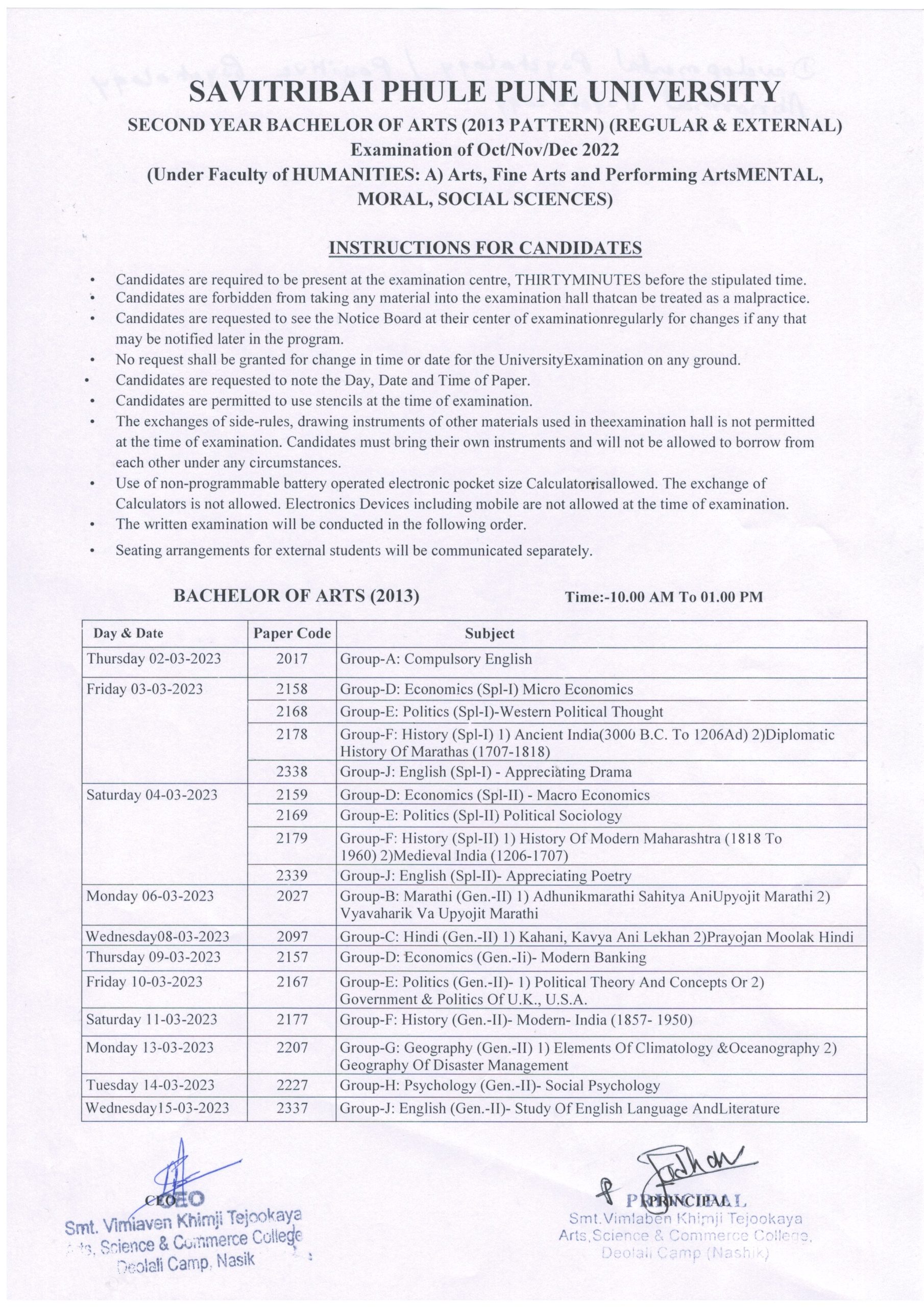 Scrolling NewsFebruary 12, 2023 S.Y.B.A. (2013 Pattern) Exam Time Table Oct.2022-23 Related posts BCA Institute level Admission List…हिंदी दिवस २०२५जल्लोष युवक महोत्सव २०२५Tree Plantation by NSS Students…Commercial Pilot License Workshop by…International Yoga Day -2025मुलींना मोफत शिक्षण परिपत्रकCollege Celebrated Maharashtra Din and…College celebrated Dr. Babasaheb Ambedkar…EXAM FORM NOTICE BA (2019…