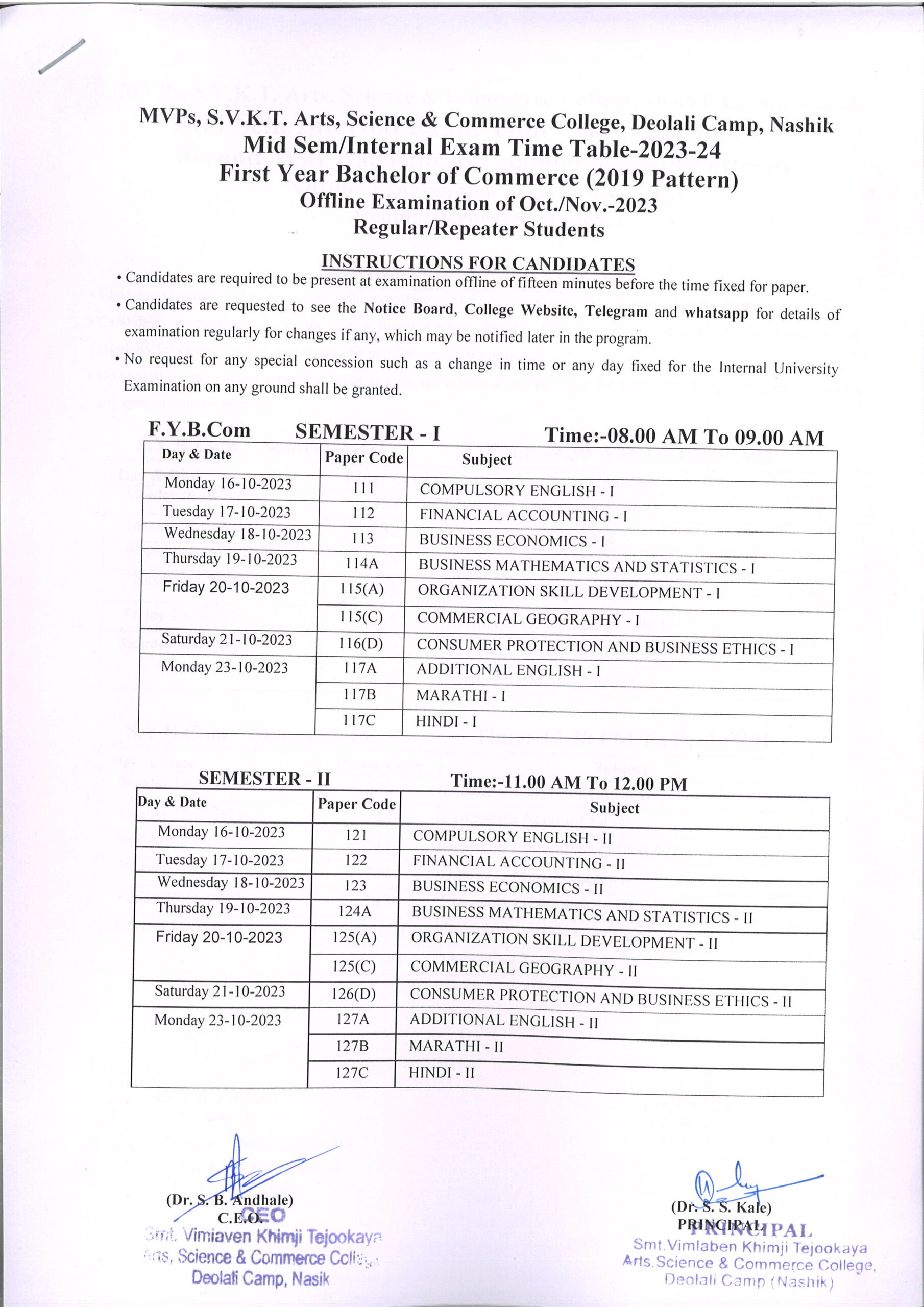 Scrolling NewsOctober 9, 2023 F.Y.B.Com. 2019 Pattern Internal Exam Time Table Oct/Nov 2023-2024 Related posts BCA Institute level Admission List…हिंदी दिवस २०२५जल्लोष युवक महोत्सव २०२५Tree Plantation by NSS Students…Commercial Pilot License Workshop by…International Yoga Day -2025मुलींना मोफत शिक्षण परिपत्रकCollege Celebrated Maharashtra Din and…College celebrated Dr. Babasaheb Ambedkar…EXAM FORM NOTICE BA (2019…